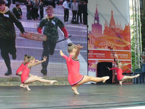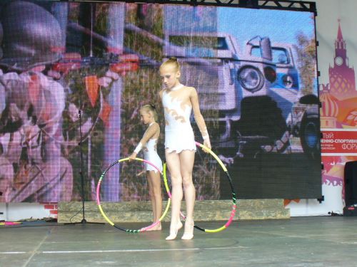 И пришло время грации... На центральной сцене Форума, сменяя друг друга, выступали юные дарования художественной гимнастики и танца из Дмитрова. И хотя сцена была явно тесновата композициям, но пластика и грациозность отодвигали это на второй план.
