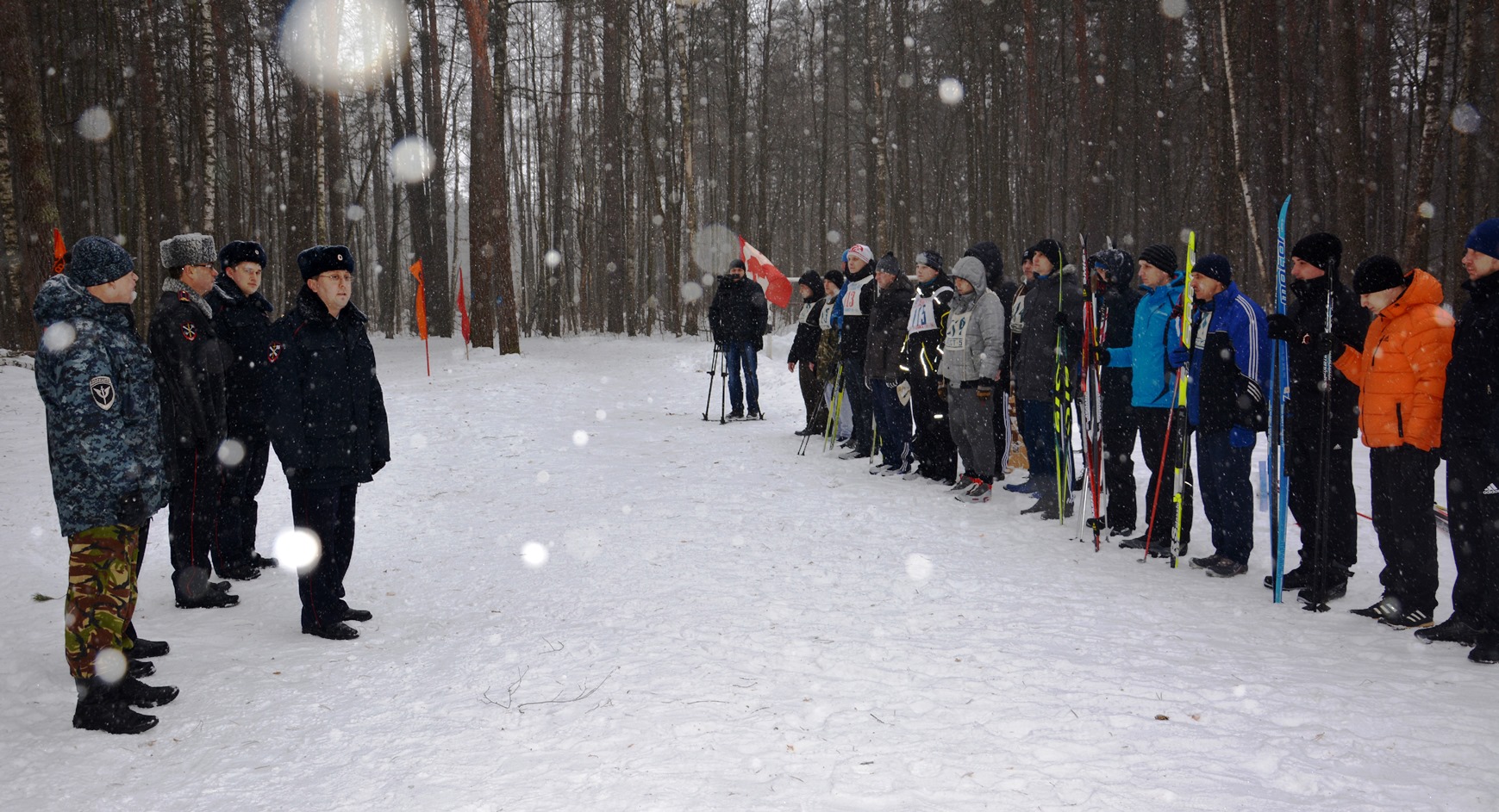 На мероприятии присутствовали: заместитель начальник УМВД России по Воскресенскому району полковник внутренней службы Д. Коновалов, помощник начальника УМВД майор внутренней службы Д. Драч, председатель НП «Совет ветеранов УВД по Воскресенскому м.р.», член Общественного совета при УМВД А. Махин, которые обратились к участникам гонки с приветственным словом, пожелали новых спортивных достижений.