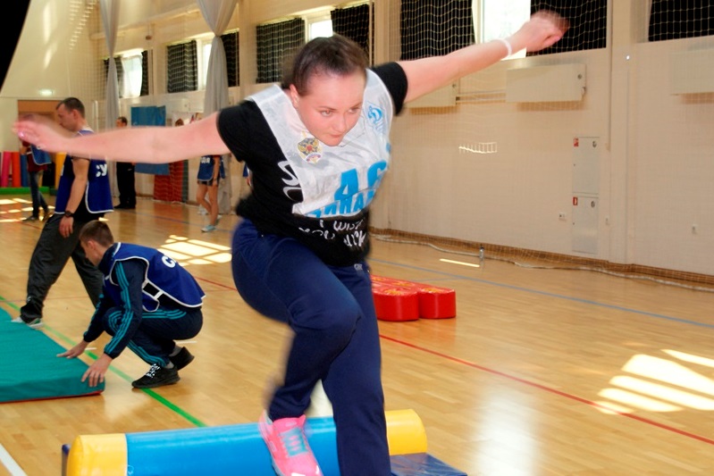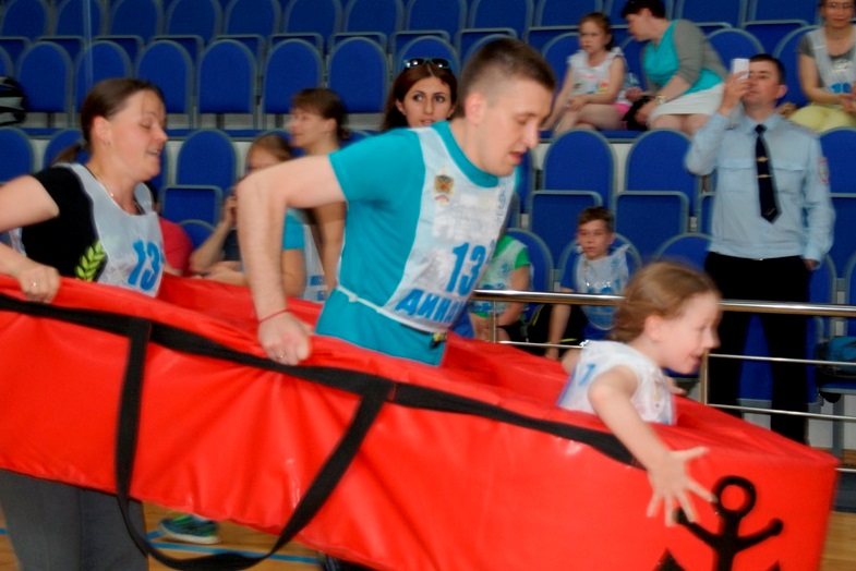 Программа соревнований состояла из трех этапов. Первый – эстафета на полосе препятствий «Штурм», затем плавание, и в заключении большая семейная эстафета с различными препятствиями: «упражнение на коне» для пап, длинный тоннель, семейные лыжи и многое, многое другое. В целом было, где и как проявить смекалку, быстроту, ловкость, и слаженность.