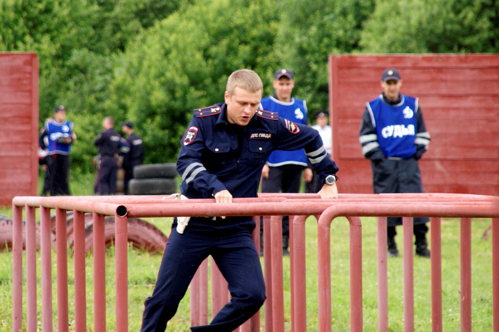 Командам, в состав которых входили два сотрудника, предстояло пройти в режиме эстафеты несколько типовых испытаний на полосе препятствий и поразить пять дисковых мишеней из пистолета Макарова.