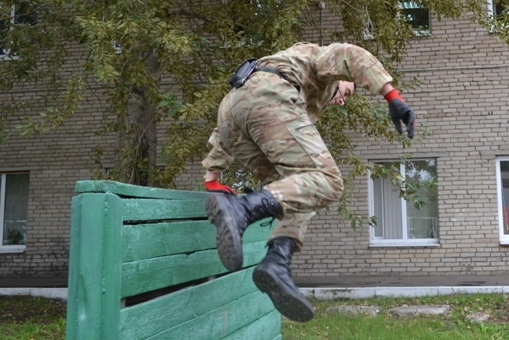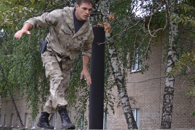 Первым был «канат» - сотрудник, пробежав от старта, должен был взобраться по канату. Вторым этапом было преодоление полосы препятствий протяженностью 100м . На третьем этапе сотрудник должен был поразить две мишени двумя пулями из табельного оружия в положении стоя и с колена за 15 секунд, а в случае промаха - пробежать штрафной круг 150 метров.