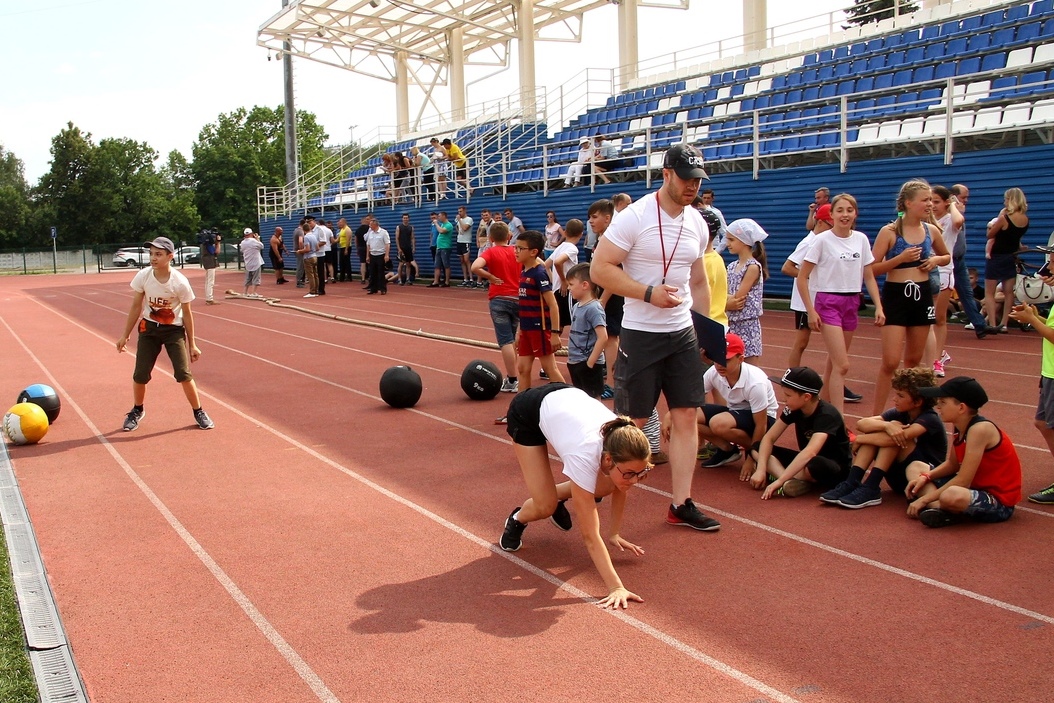 Детские соревнования прошли в трех возрастных группах: до 10 лет, до 13 лет и до 15 лет. Соревнования среди детей проходили в виде полосы препятствий с выполнением элементарных упражнений из кроссфита (ходьба медвежьим шагом, крабом, с медболом, приседания с медболом, перебрасывание медбола через плечо, берпи и финиш бег 60 м.). В результате определились следующие победители и призеры: