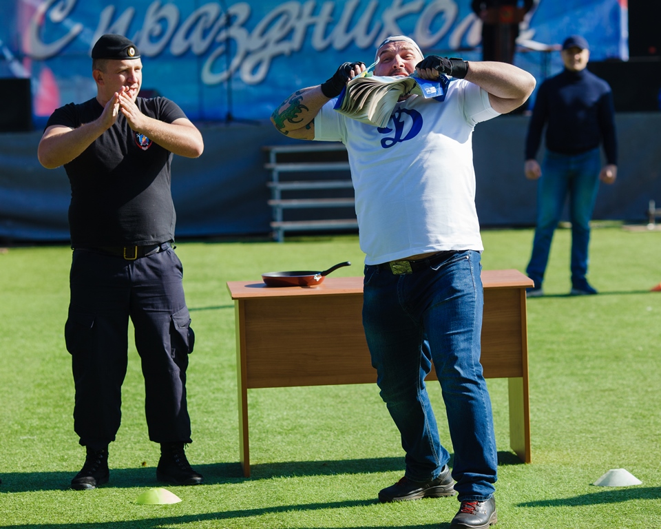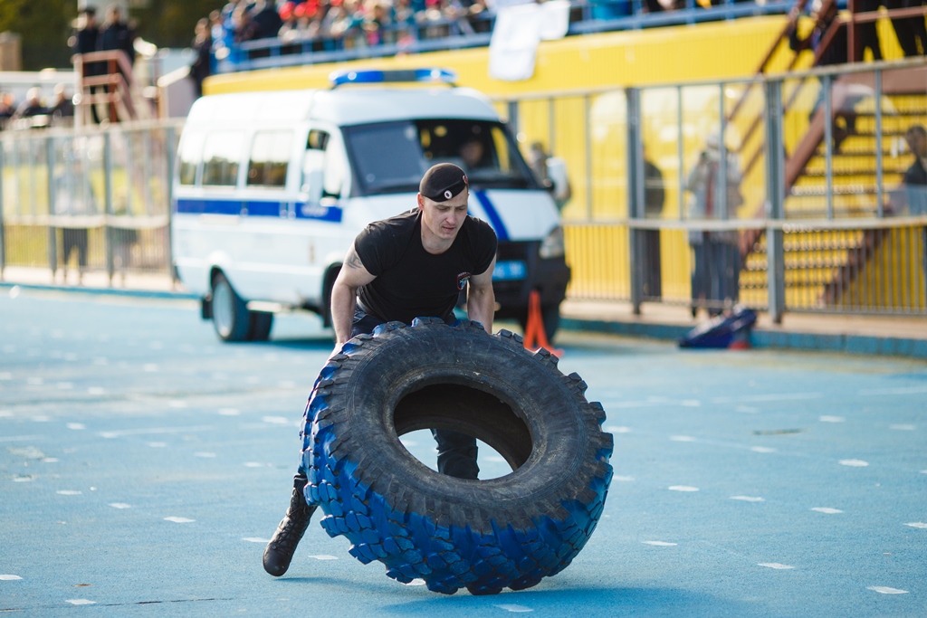 Стражи порядка соревновались в полицейской эстафете, перетягивании каната, сборке-разборке пистолета Макарова, армрестлинге и жиме штанги лежа, в метании «гигантской» гири, борьбе «Сумо», «Гладиаторских боях» и других соревнованиях и развлекательных конкурсах.