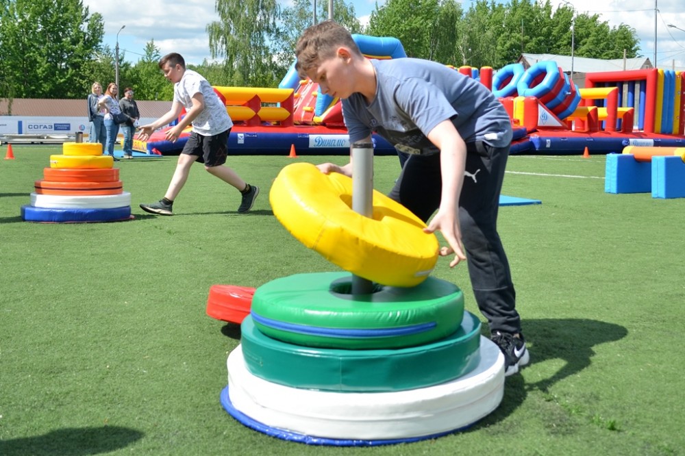 Стражи порядка ознакомили детей с инфраструктурой и учебными классами Полка полиции. На новом стадионе для детей была организована большая физкультурно-спортивная программа, которая по традиции началась с разминки. Стражи порядка вместе с детьми выполняли комплекс общеразвивающих физических упражнений, а затем предложили воспитанникам лицея пройти испытания на надувной полосе препятствий "Штурм" и большой модульной эстафете.