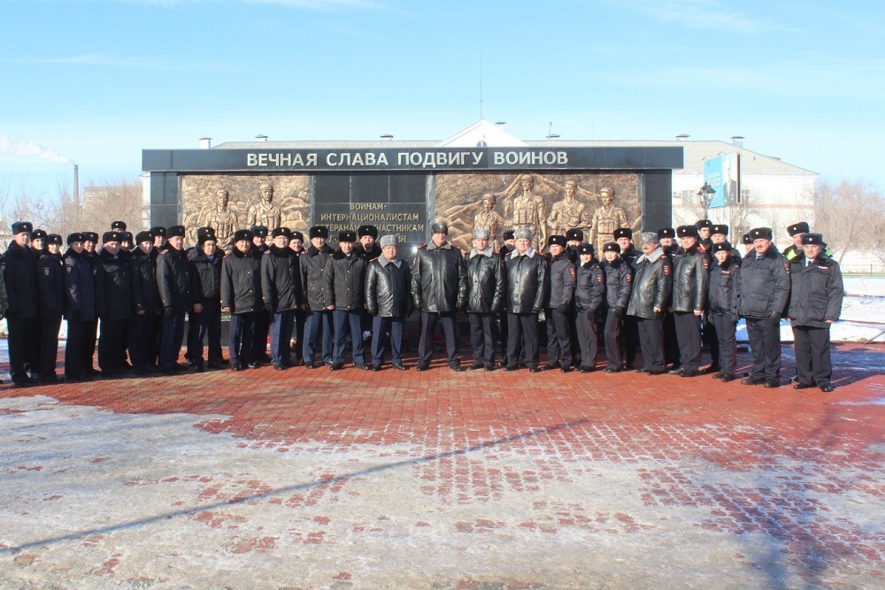 Сотрудники полиции, представители Совета ветеранов и Общественного совета при УМВД России на комплексе «Байконур» вместе с иными организациями города собрались у памятника воинам-интернационалистам для того, чтобы отдать дань памяти героям, погибшим, оберегая Родину в интернациональных воинах, и ветеранам, не жалея себя стоявшим на охране своего государства.