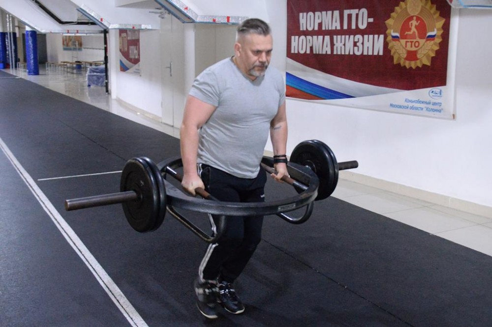 - «Походка Фермера» - преодоление дистанции 40 метров с грузом 90 кг. на время.