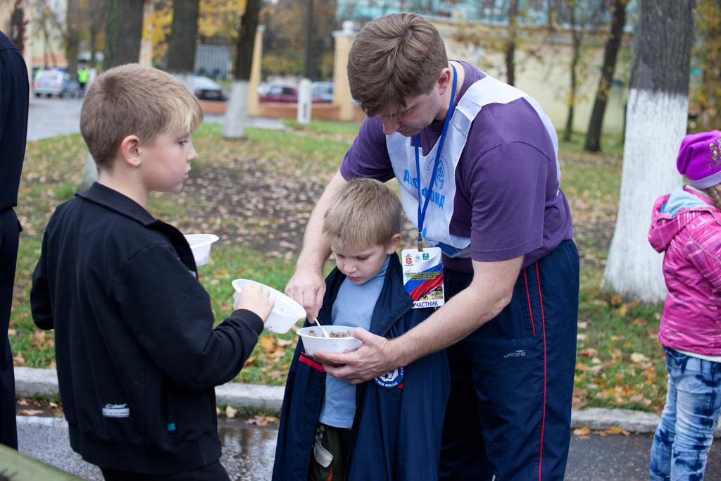 Во время праздника все участники соревнований могли отведать горячую кашу из полевой кухни.