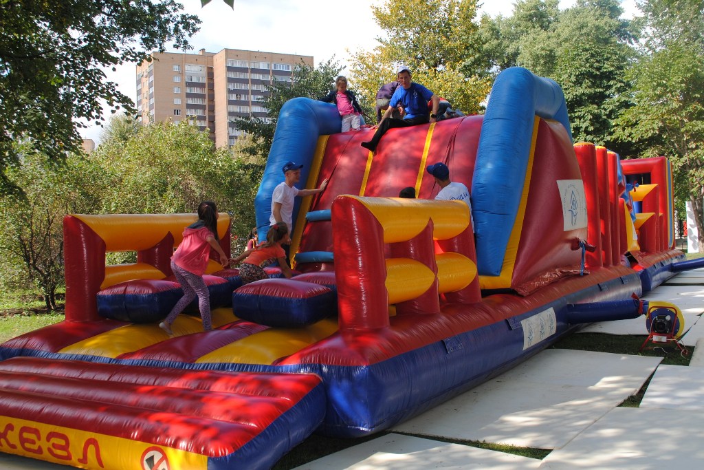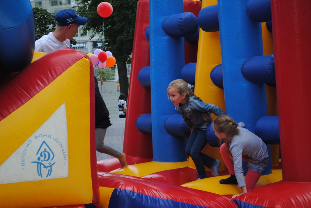 - Это одно из самых любимых занятий детей, они с удовольствием бегают и преодолевают полосу препятствий, и если посмотреть вокруг, то в этой парковой зоне мы увидим еще один надувной аттракцион, который стоит совершенно пустой. Это говорит о том, что наша организация мероприятия, оформление места отдыха для детей и активная работа взрослых – это все нравится и мамам, и папам, и бабушкам, и дедушкам, потому они привели своих детей и внуков именно на нашу площадку. Люди проходят мимо, видят нашу площадку и говорят: «О! «Динамо»! - и тут же отпускают своих детей на полосу препятствий. Приятно, что даже молодые ребята знают, что такое «Динамо», а это лишний раз доказывает, что если «Динамо» есть, то есть и стабильность. Девиз «Динамо» - сила в движении, мы предлагаем сегодня всем желающим принять участие в увлекательных соревнованиях, испытать свою силу, смелость и ловкость на нашей полосе препятствий, получить сувениры с символикой «Динамо» и хорошее настроение.